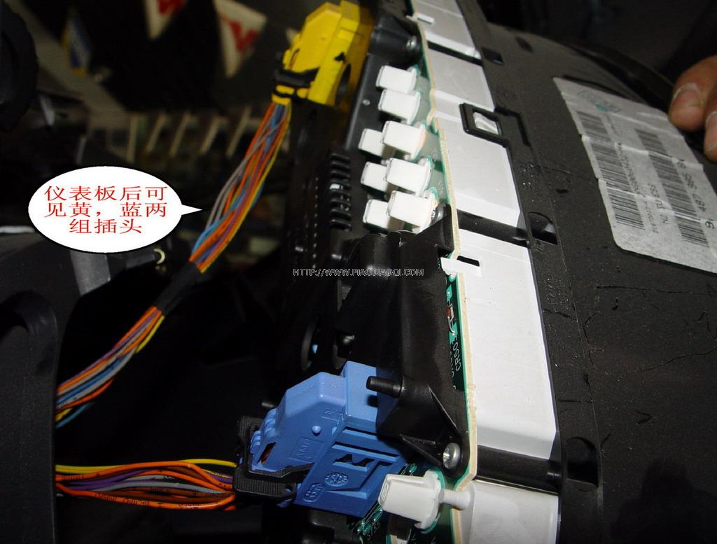 4、本田CR-V,拆下儀表后面插頭藍白線